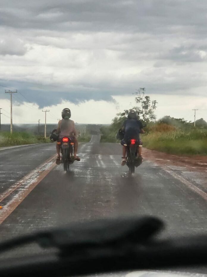 Ao abordar e dar a ordem de parada, um dos motoqueiros empreendeu fuga, e abandonou a moto que conduzia a cerca de 700 metros, correndo a pé para uma mata fechada, não sendo possível localizar o mesmo, já o outro condutor, foi abordado pela PM e foi realizado a checagem pessoal, sendo possível identificar que um dos veículos era proveniente de furto, sendo uma Honda cor Roxa.