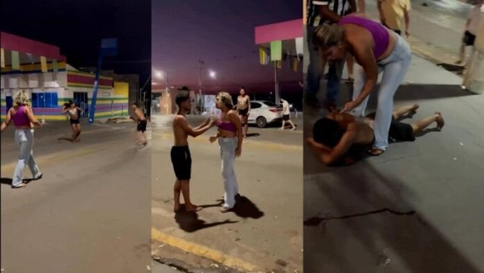 A madrugada de sábado (27) foi marcada por uma cena de violência e desordem no centro de Diamantino/MT. Um vídeo amplamente compartilhado nas redes sociais mostra uma confusão envolvendo três pessoas, duas mulheres e um homem, que terminou em agressões físicas na Avenida JPF Mendes, em frente ao antigo posto de combustíveis atualmente desativado.