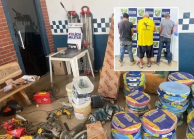 Durante a abordagem, os policiais confirmaram que o veículo estava carregado com os itens furtados. Nas imediações, três homens foram identificados e confessaram participação no crime, sendo imediatamente presos.