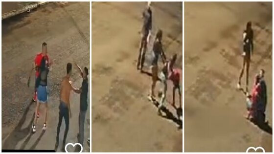 As imagens mostram que a pancadaria acontece no meio da rua. Um homem de camiseta vermelha discute com outro de camiseta preta e outra. Outros tentam ao redor separar, ocasião em que um homem que usava uma camiseta rosa também começou uma discussão e tentou ir para cima de um outro rapaz de uma camiseta branca.