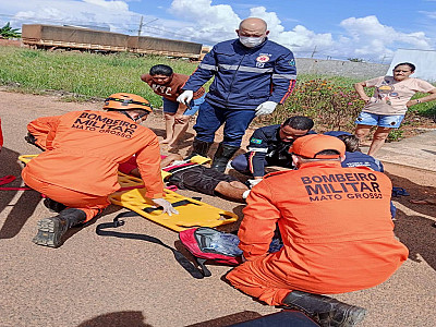 Após o atropelamento ele ficou caído no solo e precisou de resgate. O Corpo de Bombeiros e SAMU, estiveram atendendo a ocorrência em conjunto.