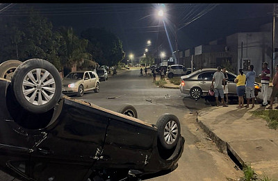 Campo Novo – Mulher fica ferida após batida resultar em tombamento no bairro Jardim das Palmeiras