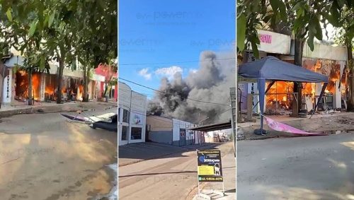Fogo atinge hotel e coloca comércios e residências em risco no centro de Novo Diamantino”; Vídeos