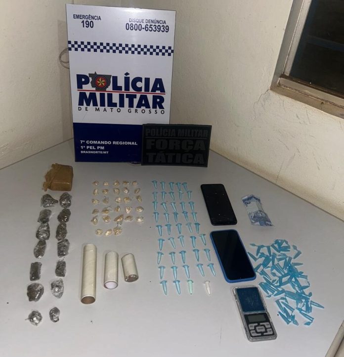 A Força Tática da Polícia Militar, em conjunto com equipes da 22ª CIPM, prendeu dois homens por tráfico de drogas em Brasnorte (MT). A ação ocorreu na noite de domingo (24), no bairro Aeroporto, durante a Operação Tolerância Zero às Facções Criminosas, deflagrada pelo 7º Comando Regional da PM.