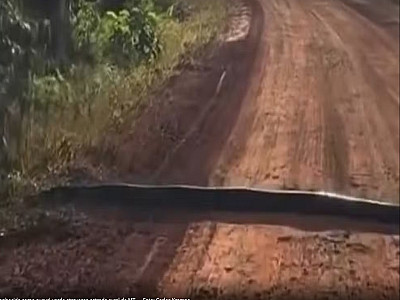 Uma cobra conhecida como sucuri-verde chamou atenção ao ser vista atravessando uma estrada rural de Campo Novo do Parecis, a 397 km de Cuiabá, nessa segunda-feira (10). O engenheiro agrônomo Carlos Eduardo Krampe dirigia uma máquina agrícola quando se deparou com a cena e comparou o animal com um quebra-molas, já que ela ocupava toda a pista.