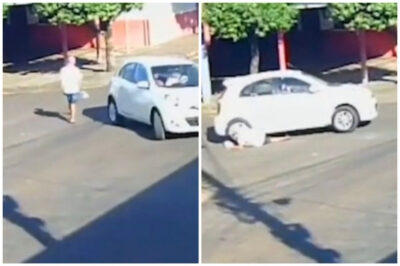 Câmeras de segurança de uma rua localizada no bairro Vila Portuguesa, em Tangará da Serra (251 km de Cuiabá), flagraram o momento em que o motorista de um Nissan March atropelou um idoso enquanto fazia uma manobra de marcha-ré no último domingo (8). O carro chegou a passar por cima de uma das pernas da vítima.