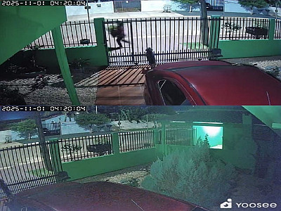 Uma câmera de segurança flagrou duas pessoas em uma moto, durante essa madrugada de sábado (1), furtando um vaso em frente a uma residência no bairro Olenka.