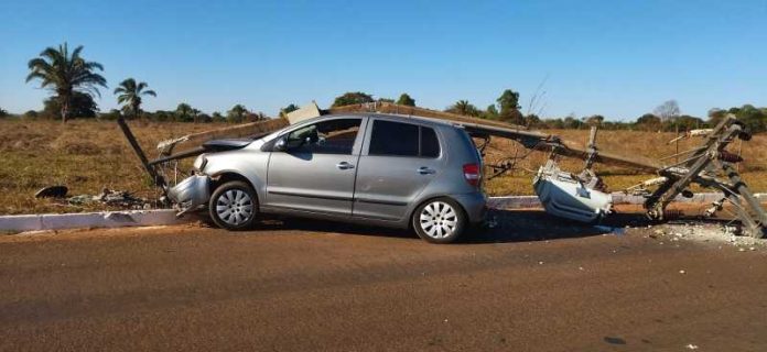 Mulher perde controle e colide contra poste que cai sobre veículo em Tangará