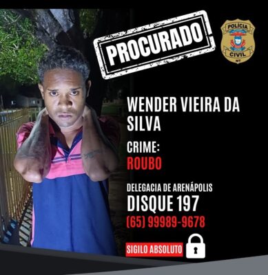 O suspeito foi identificado como Wender Vieira da Silva, indivíduo já conhecido das autoridades policiais devido ao seu extenso histórico criminal, envolvendo tráfico de drogas, roubos, corrupção de menores e receptação, praticados em diversas cidades da região como Arenápolis, Alto Paraguai, Nova Mutum e Poconé.
