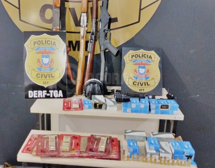 Um assalto registrado na manhã desta segunda-feira (11) no Parque Tangará 2, em Tangará da Serra-MT, mobilizou as forças policiais do município. Várias armas haviam sido levadas da vítima, que é CAC (Colecionador, Atirador desportivo e Caçador).