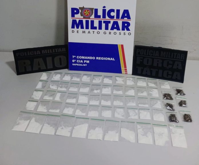 Na manhã desta sexta-feira (07/03), a Polícia Militar do 7º Comando Regional, por meio da Força Tática e da equipe RAIO, realizou uma operação no centro de Sapezal que culminou na prisão de um jovem de 20 anos, suspeito de envolvimento com o tráfico de drogas.