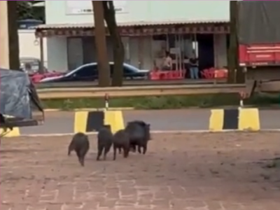 Uma cena inusitada e divertida tomou conta das redes sociais: uma família de porcos-do-mato invadiram uma empresa de latarias e acessórios automotivos, causando surpresa entre funcionários e clientes em Campo Novo do Parecis. O gerente Lucas Antenor contou que foi a primeira vez que os animais invadiram o estabelecimento. “Por volta das 17h de sexta-feira (27) eles entraram na loja. Não sentimos medo porque aqui na empresa tem mais homem e por isso rimo muito. Um deles mordeu o pé do estoquista, mas não foi grave porque o funcionário estava de bota”.