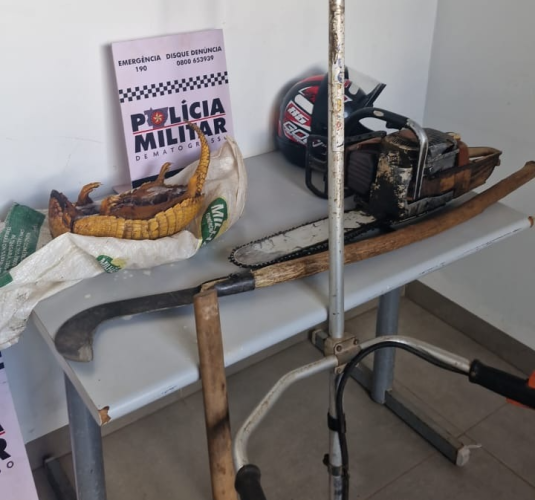 Além dos envolvidos, foram apreendidos equipamentos utilizados no desmate, como motosserra, roçadeira, foice e machado, três aparelhos celulares e ainda um animal silvestre — um tatu abatido — que estava armazenado em um freezer.