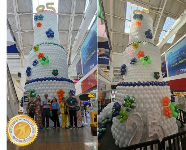 Superando Limites com Balões: Costa Brazil e o Novo Bolo GigantePara a criação do novo recorde, Costa Brazil uniu técnicas modernas de balonismo artístico e uma visão criativa sem precedentes, usando balões especialmente produzidos pela Happy Day Balões. A escultura foi meticulosamente planejada para representar um bolo de aniversário, simbolizando as bodas de prata do Shopping Benfica e cativando visitantes de todas as idades.