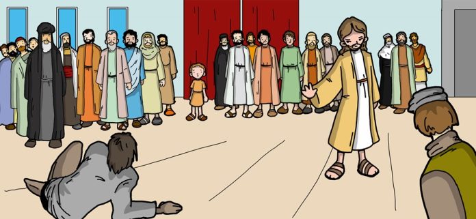 Jesus demonstra sua autoridade expulsando um demônio na sinagoga de Cafarnaum