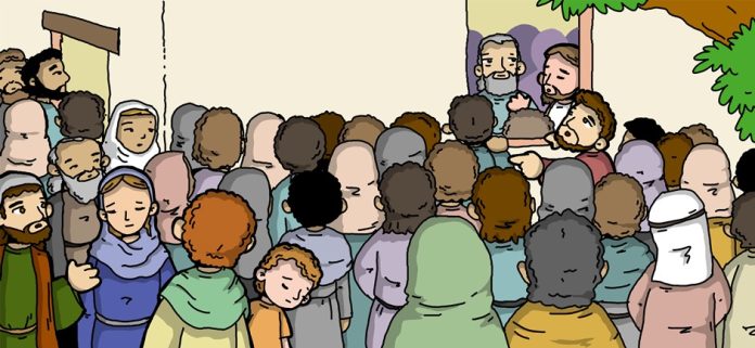 Jesus voltou para casa, e outra vez se ajuntou tanta gente que eles nem mesmo podiam se alimentar. Quando seus familiares souberam disso, vieram para detê-lo, pois diziam: «Está ficando louco».