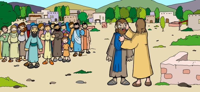 Jesus deixou de novo a região de Tiro, passou por Sidônia e continuou até o mar da Galiléia, atravessando a região da Decápole. Trouxeram-lhe, então, um homem que era surdo e mal podia falar, e pediram que impusesse as mãos sobre ele. Levando-o à parte, longe da multidão, Jesus pôs os dedos nos seus ouvidos, cuspiu, e com a saliva tocou-lhe a língua. Olhando para o céu, suspirou e disse: «Efatá!» —que quer dizer: «Abre-te». Imediatamente, os ouvidos do homem se abriram, sua língua soltou-se e ele começou a falar corretamente. Jesus recomendou, com insistência, que não contassem o ocorrido para ninguém. Contudo, quanto mais ele insistia, mais eles o anunciavam. Cheios de grande admiração, diziam: «Tudo ele tem feito bem. Faz os surdos ouvirem e os mudos falarem».