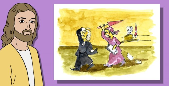 Parábola do juiz injusto: a viúva insiste e, no final, o juiz faz justiça