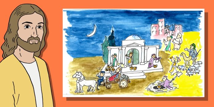 «O Reino dos Céus é também como um homem que ia viajar para o estrangeiro. Chamou os seus servos e lhes confiou os seus bens: a um, cinco talentos, a outro, dois e ao terceiro, um — a cada qual de acordo com sua capacidade. Em seguida viajou. O servo que havia recebido cinco talentos saiu logo, trabalhou com eles e lucrou outros cinco. Do mesmo modo, o que havia recebido dois lucrou outros dois. Mas aquele que havia recebido um só, foi cavar um buraco na terra e escondeu o dinheiro do seu senhor. »Depois de muito tempo, o senhor voltou e foi ajustar contas com os servos. Aquele que havia recebido cinco talentos entregou-lhe mais cinco, dizendo: ‘Senhor, tu me entregaste cinco talentos. Aqui estão mais cinco que lucrei’. O senhor lhe disse: ‘Parabéns, servo bom e fiel! Como te mostraste fiel na administração de tão pouco, eu te confiarei muito mais. Vem participar da alegria do teu senhor!’. Chegou também o que havia recebido dois talentos e disse: ‘Senhor, tu me entregaste dois talentos. Aqui estão mais dois que lucrei’. O senhor lhe disse: ‘Parabéns, servo bom e fiel! Como te mostraste fiel na administração de tão pouco, eu te confiarei muito mais. Vem participar da alegria do teu senhor!’. »Por fim, chegou aquele que havia recebido um só talento, e disse: ‘Senhor, sei que és um homem severo, pois colhes onde não plantaste e ajuntas onde não semeaste. Por isso fiquei com medo e escondi o teu talento no chão. Aqui tens o que te pertence’. O senhor lhe respondeu: ‘Servo mau e preguiçoso! Sabias que eu colho onde não plantei e que ajunto onde não semeei. Então devias ter depositado meu dinheiro no banco, para que, ao voltar, eu recebesse com juros o que me pertence’. Em seguida, o senhor ordenou: ‘Tirai dele o talento e dai àquele que tem dez! Pois a todo aquele que tem será dado mais, e terá em abundância, mas daquele que não tem, até o que tem lhe será tirado. E quanto a este servo inútil, lançai-o fora, nas trevas. Ali haverá choro e ranger de dentes!’».