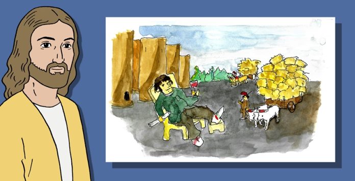 Hoje, escutamos a parábola do homem insensato, que confia nas riquezas materiais. «Minha alma, tens muitos bens em depósito para longos anos». Ah, sim? O que são “longos anos”? Perante a eternidade não são nada. – Além disso: “longos anos” podem converter-se para mim em poucos dias (semanas, meses). Só Deus tem domínio total sobre o tempo! E, o pior, é que nem o Céu nem Deus podem ser comprados com “trigo”.