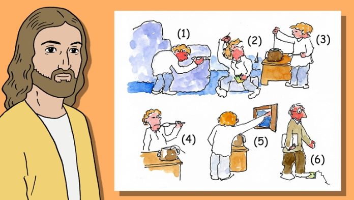 Hoje, o Mestre diz-nos a todos – não somente aos Apóstolos – que somos o sal da terra. Sal rochas tem muita areia (1); por isso é armazenado em sacos pequenos (2), eles ficam na panela (3). Se eles não gostam, são inúteis (4) são expulsos (5) e são pisoteados por pessoas (6). Os filhos de Deus devem transmitir o “sabor” da felicidade desta vida e a “luz” do caminho que conduz à alegria eterna. – Como fazer isto? – Oferecendo amizade, sendo amáveis, sorrindo sempre, ajudando os outros, emprestando as coisas… Senhor, faz que sempre os cristãos sejamos sempre boa sal, que de bom gosto e preserve da corrupção.