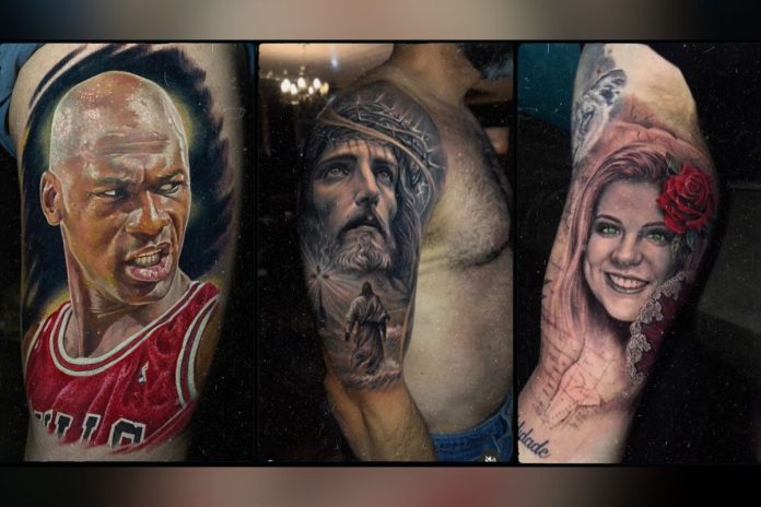 Hoje, aos 34, ele se tornou referência no ramo e especialista em realismo. Olha só exemplos de rostos – até de famosos – reproduzidos pelo artista na pele de seus clientes: