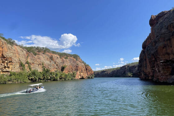 Quinto maior cânion navegável do mundo, com 65 quilômetros de extensão, 170 metros de profundidade e uma largura que varia de 50 a 300 metros, o Xingó é uma mistura da ação da natureza com a intervenção do homem. O represamento das águas do São Francisco após a construção da usina hidrelétrica de mesmo nome, nos anos 1990, triplicou o tamanho do rio naquela área e formou o vale de águas profundas que hoje permite a navegação em meio às rochas areníticas avermelhadas.