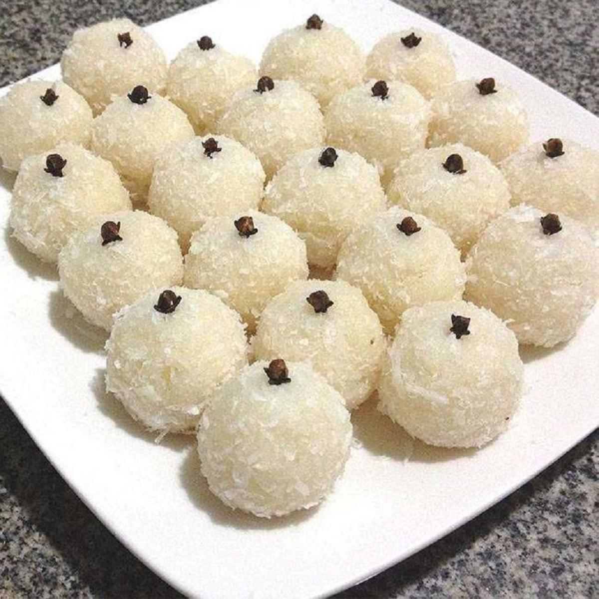 Deixe esfriar, faça as bolinhas, passe no coco ralado, decore com um cravo e está pronto.