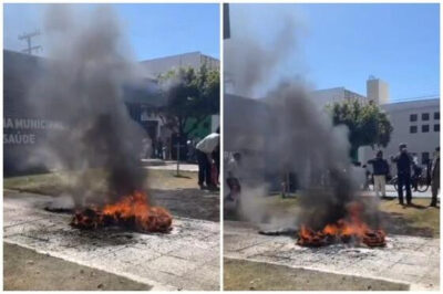 Um morador de Sorriso (420 km de Cuiabá), que é marido de uma mulher de 44 anos, colocou fogo em pneus em frente à Secretaria Municipal de Saúde, nesta quinta-feira (22) e mobilizou equipes do Corpo de Bombeiros para apagar as chamas e o fumaceiro que tomou conta do local. O ato foi um protesto porque a esposa está internada na Unidade de Pronto Atendimento (UPA) Sara Akemi Ichicava, com um buraco aberto no abdômen, aguardando transferência para o Hospital Regional. Familiares da paciente denunciam negligência no caso.