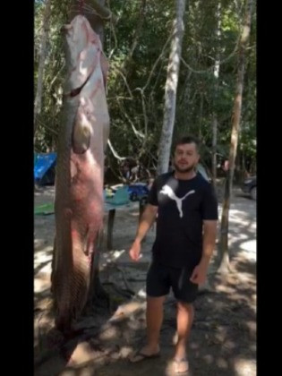 Um feito impressionante nas águas do Rio Teles Pires, em Nova Canaã do Norte (a cerca de 690 km de Cuiabá), foi compartilhado de forma massiva nas redes sociais. Um pescador da região, que não foi identificado, fisgou um pirarucu gigante. Conhecido como um dos maiores peixes de água doce do mundo, de acordo com o pescador, o que aparece no vídeo mede 2,44 metros de comprimento e pesa cerca de 200 quilos. (Assista ao final).