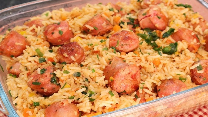 Em uma panela, aqueça o azeite de oliva em fogo médio. Adicione a cebola e o tomate e doure. Junte a linguiça toscana e refogue por 5 minutos. Por último, coloque o arroz e misture. Transfira para um refratário e cubra com o queijo muçarela. Leve ao forno preaquecido a 200 °C por 15 minutos. Sirva em seguida.