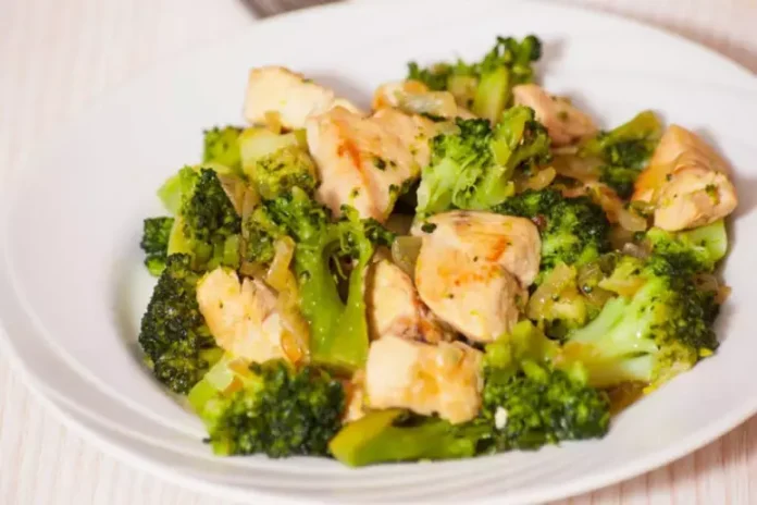 Em uma panela, coloque o azeite e leve ao fogo médio para aquecer. Adicione metade da cebola e doure. Acrescente os floretes de brócolis e refogue até ficarem al dente. Tempere com sal e pimenta-do-reino. Reserve. Em um recipiente, coloque o frango e tempere com sal, pimenta-do-reino e suco de limão. Reserve. Em uma panela, coloque o azeite e leve ao fogo médio para aquecer. Junte o alho e o restante da cebola e doure. Acrescente o frango reservado e doure. Desligue o fogo, coloque os floretes de brócolis e misture. Sirva em seguida.