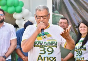 No seu discurso, o prefeito Ari parabenizou Nova Olímpia pelos 39 anos de emancipação e destacou a importância das parcerias para o sucesso das ações da gestão pública.