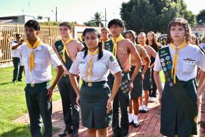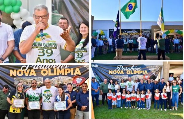 A programação em celebração aos 39 anos de emancipação político-administrativa foi encerrada com um ato cívico, que contou com a participação de escolas e fanfarras de Nova Olímpia.