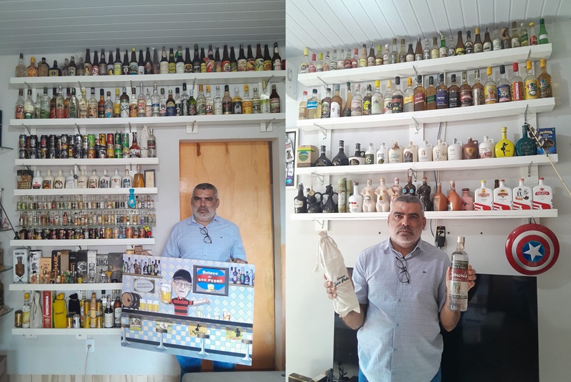 Batizada de ‘Boteco do Seo Pedro”, a sala de sua casa tornou-se uma grande bancada de bebidas, com diversas prateleiras contendo ao menos 700 rótulos de cachaças e aguardentes de 21 Estados Brasileiros, sendo 27 rótulos só de Mato Grosso. “Comecei a comprar alguns rótulos, algumas cachaças, principalmente de Minas. Fui comprando alguma através de colegas que eu tinha em outros estados, clubes de colecionadores que nós temos vários no Brasil, então tem uns 8 anos que eu comecei a adquirir a cachaça. Aquela coisa do ímpeto, eu vejo uma e quero comprar”, pontuou, destacando que não comercializa e “até para beber fico com dó de abrir, estão todas elas lacradas. As que eu tenho aqui, quando eu bebo, reponho ou abro alguma que tenho em duplicidade”, diz.