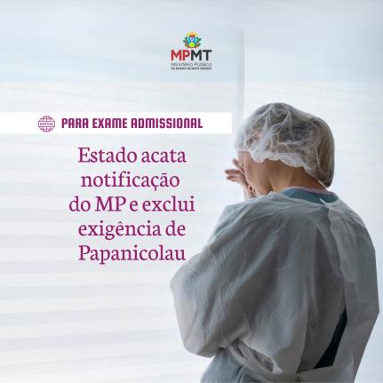 A Secretaria de Estado de Planejamento e Gestão (Seplag) acolheu notificação recomendatória expedida pelo Ministério Público do Estado de Mato Grosso e determinou a exclusão da exigência de apresentação do exame de Colpocitologia Oncótica, conhecido como papanicolau, por mulheres com idade igual ou acima de 40 anos, aprovadas em concurso público.