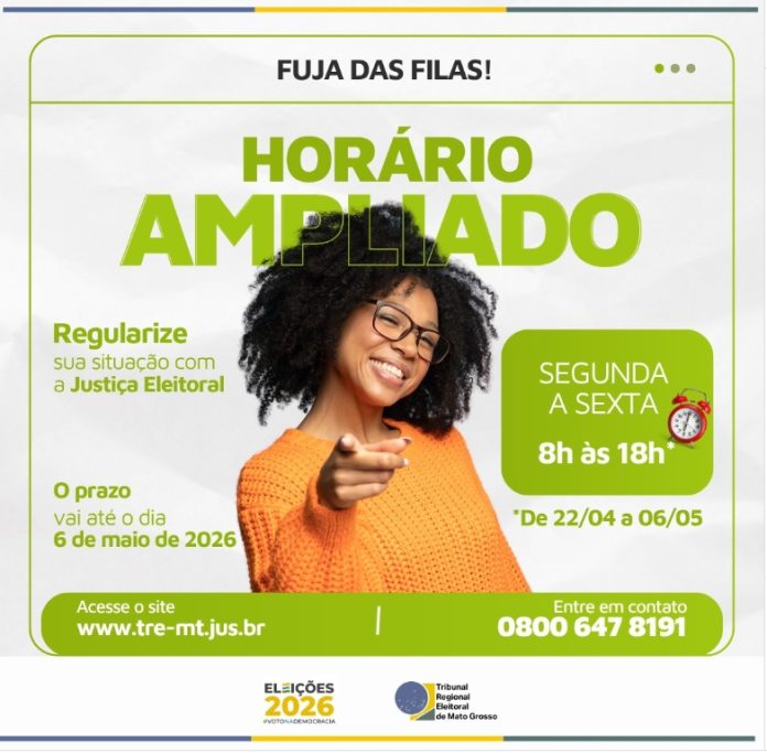 A Justiça Eleitoral de Mato Grosso iniciou um regime de esforço concentrado para atender os cidadãos que precisam regularizar sua situação antes do fechamento do cadastro eleitoral para as Eleições 2026. Em Nova Olímpia, o Posto Eleitoral passa a operar com horário ampliado, funcionando de segunda a sexta-feira, das 8h às 18h.
