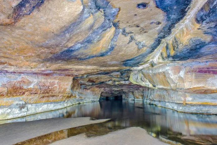 Complexo Aroe Jari reúne cavernas de arenito com lago que muda de cor, trilhas e cachoeiras em um cenário raro no coração de Mato Grosso.
