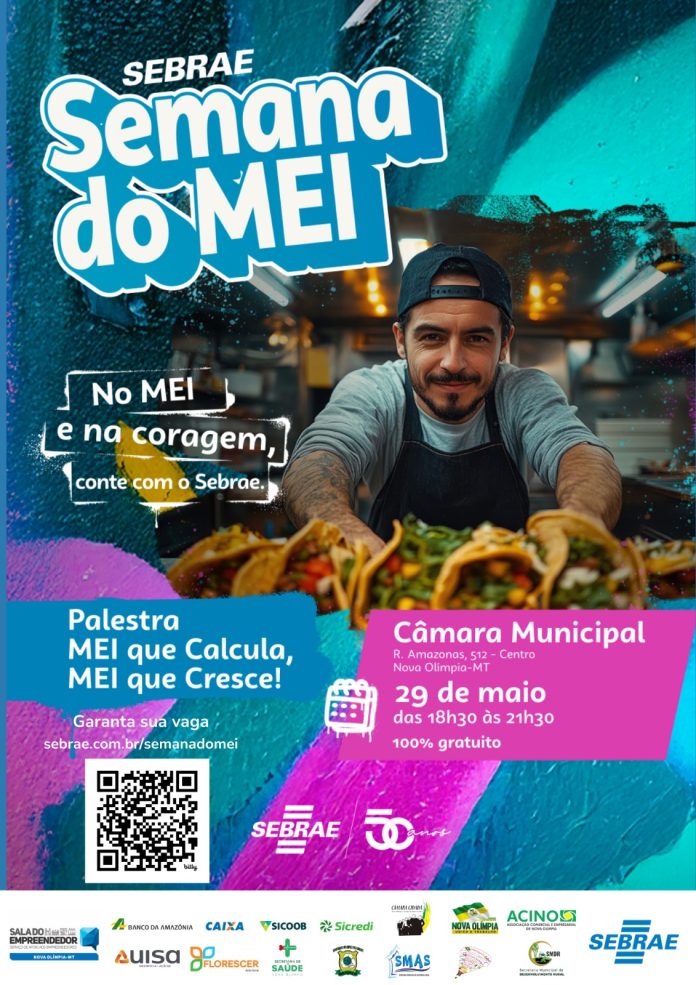 Quinta-feira (29.05), atendimento do Banco da Amazônia S. A, orientações sobre acesso de Crédito MEI, Feirinha MEI, Artesanatos e Praça de Alimentação, atendimento da Sala do Empreendedor: Atendimento em geral: Cadastro e Oferta de Soluções- Sebrae / Mutirão da Declaração 2024 MEI. À noite, das 18h30 às 21h30, será realizada na Câmara Municipal de Nova Olímpia uma palestra intitulada, “MEI que Calcula, MEI que Cresce”.
